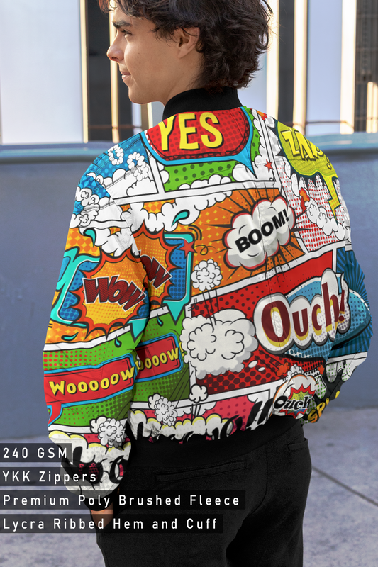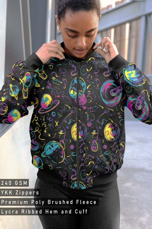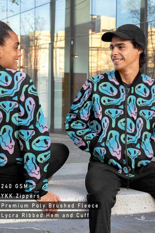 Our all-over print designer bomber jackets fuse bold, artistic flair with high-fashion streetwear. This all season jacket is perfect for making a statement, they offer a modern twist on a classic silhouette, combining style, comfort, and individuality in every stitch.