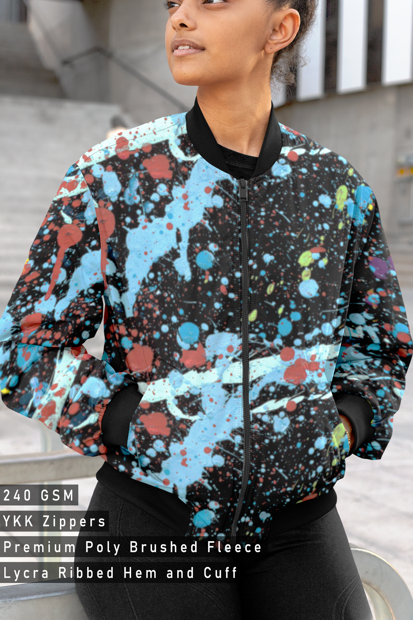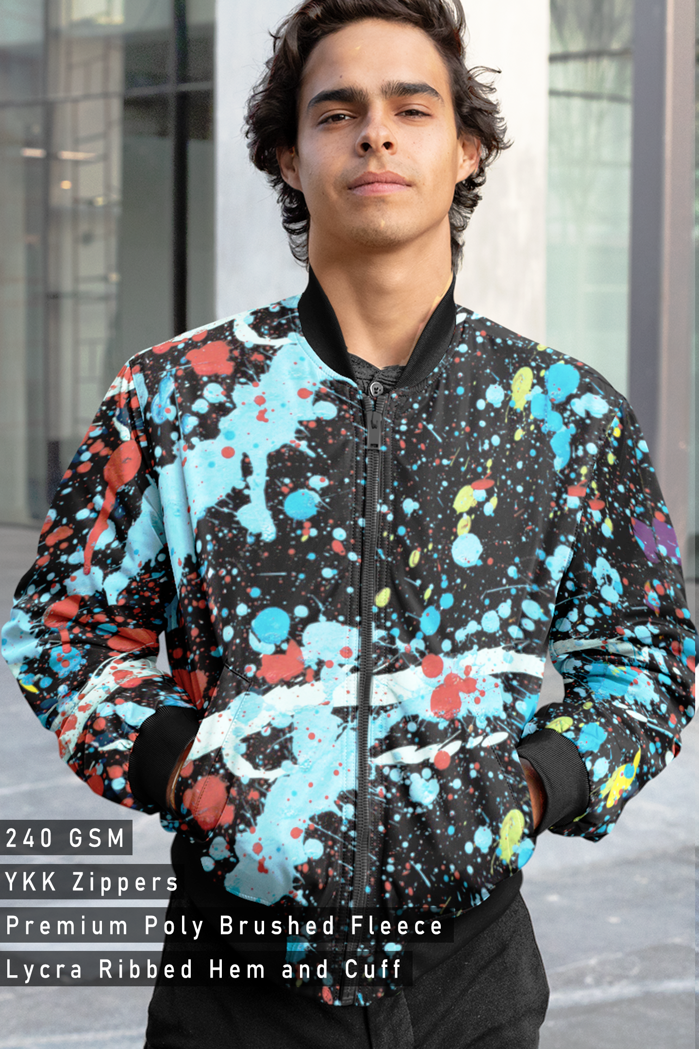 Make a statement with our eye-catching bomber jackets. Crafted with premium materials and featuring bold, artistic designs, these jackets are more than just outerwear – they're a reflection of your unique style.