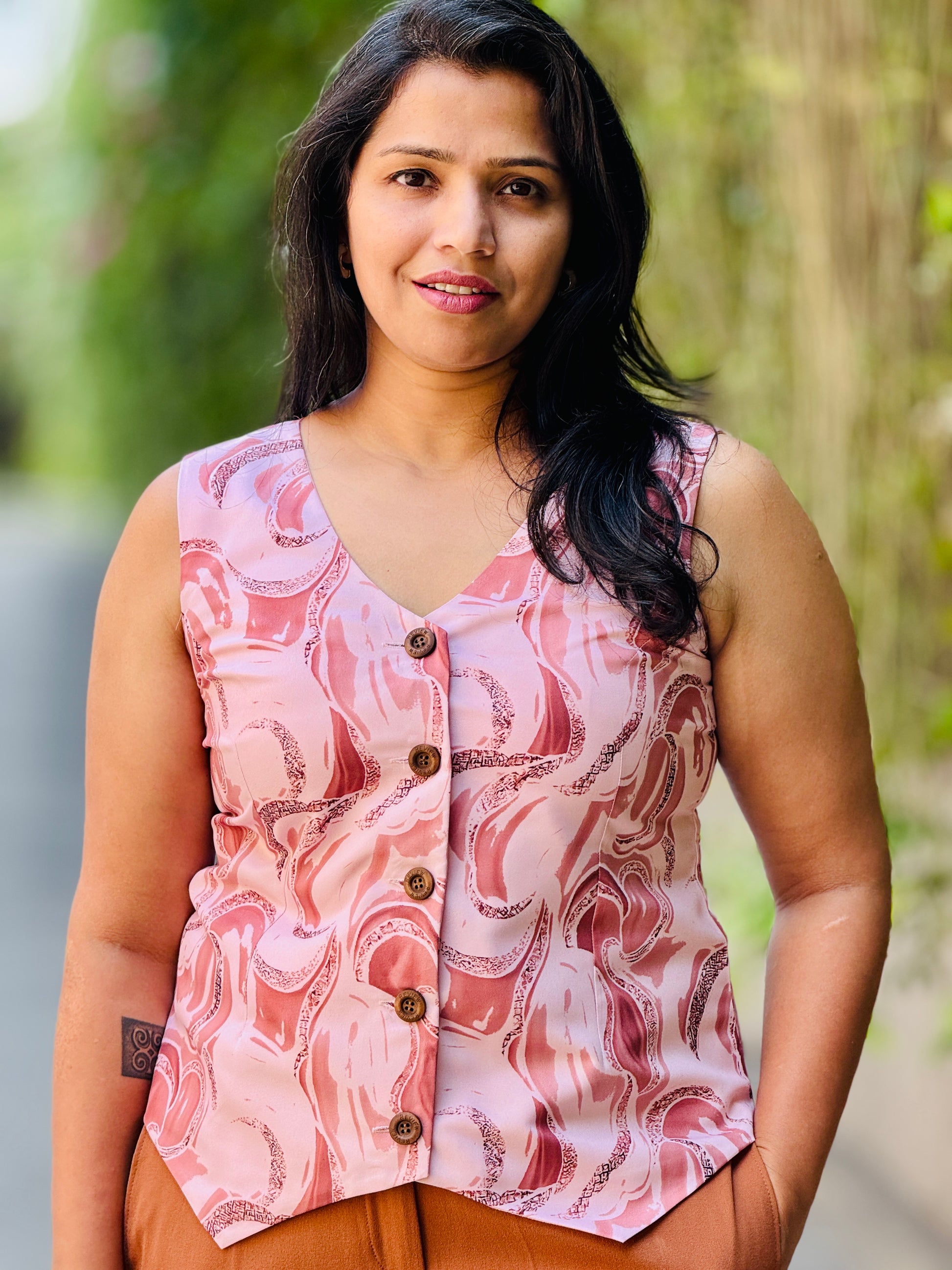 Women’s Cool Pink & White Waistcoat – Premium Cotton Vest with abstract wave prints