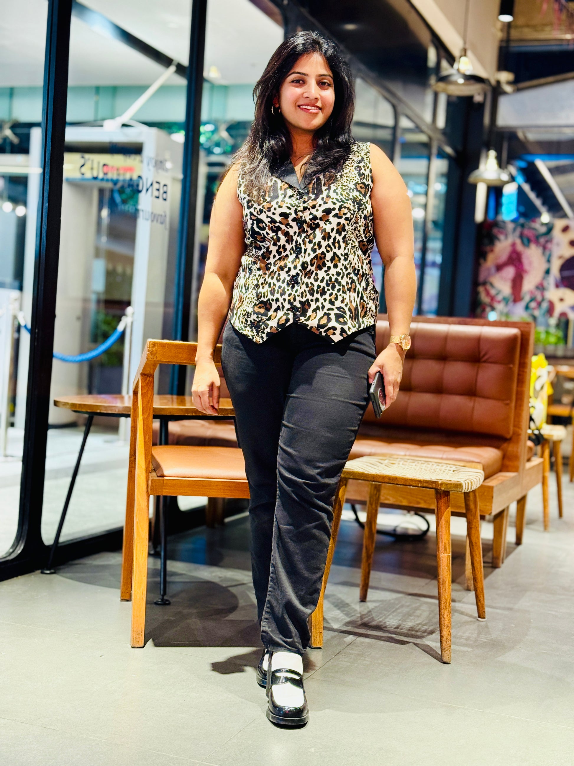 Elevate your style with this lightweight, breathable Viscose Crepe Polyester vest, With all time classic animal prints